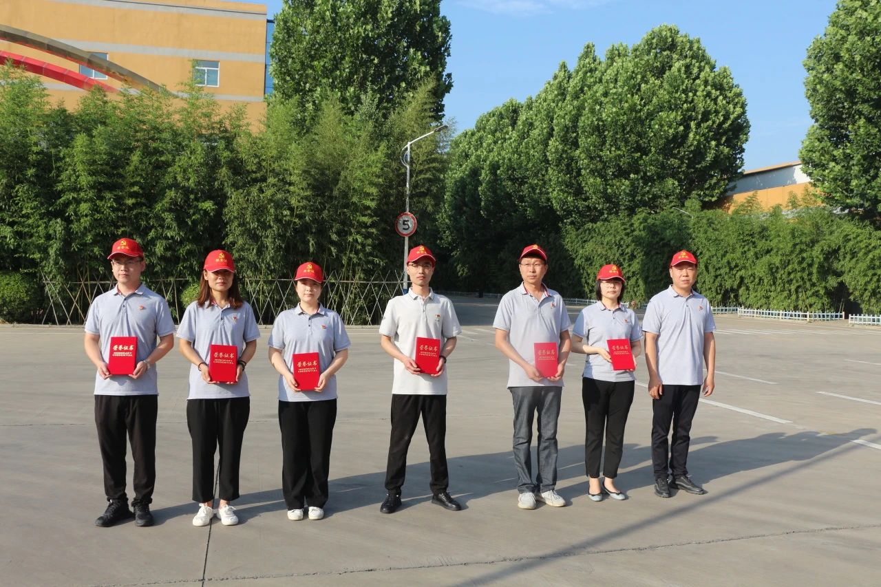 在焦海濤同志的帶領下,全體人員高舉右拳,高聲朗讀員工誓詞和行為準則,伴隨著《沒有共產黨就沒有新中國》激昂奮進的歌聲,全體人員列隊出發。